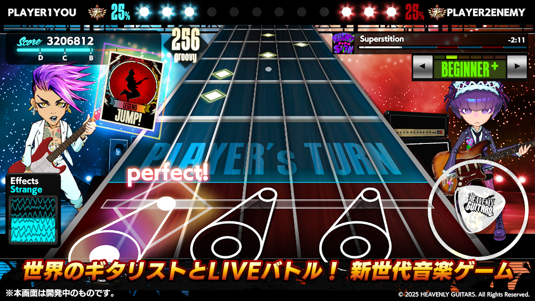 『Heavenly Guitars』では、従来のリズムゲームを超える新感覚として、なんとライブ対戦中に「難易度変更」ができちゃうんです♪